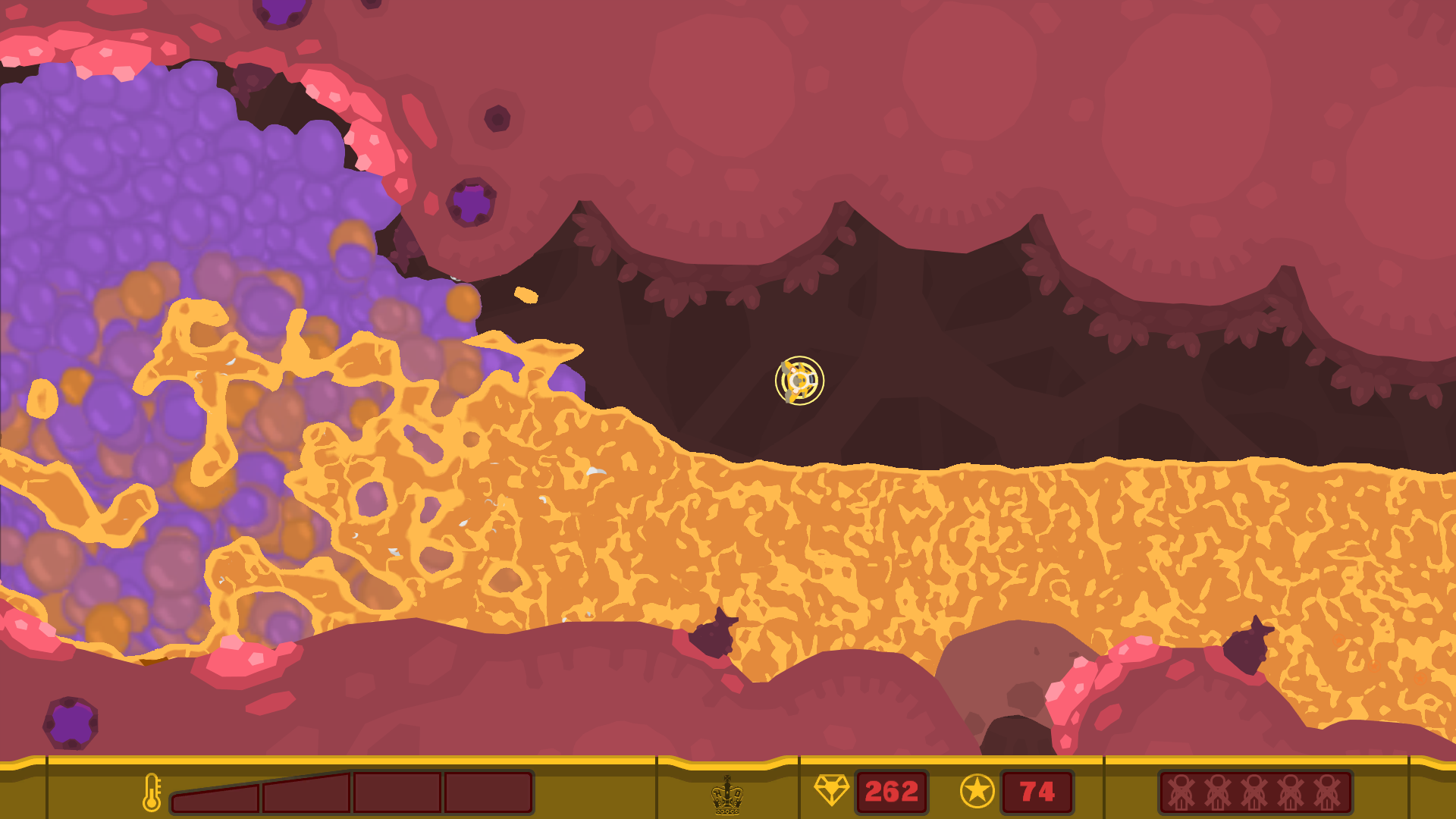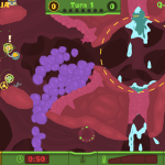 For the first time in a PixelJunk series there will be an online competitive battle mode. PixelJunk Shooter 2 online battle mode takes the competitive mode, and flips it on its head. Their mode is instead more of a cat and mouse battle with each player taken turns as the hunter and the hunted. When playing as the mouse you will be invisible to your foe unless your directly in his line of sight. This will give you the opportunity to cautiously sneak around them to grab survivors and take them to your base. Each survivor you rescue is worth a point, but when other person takes the role as the mouse they may steal them back.