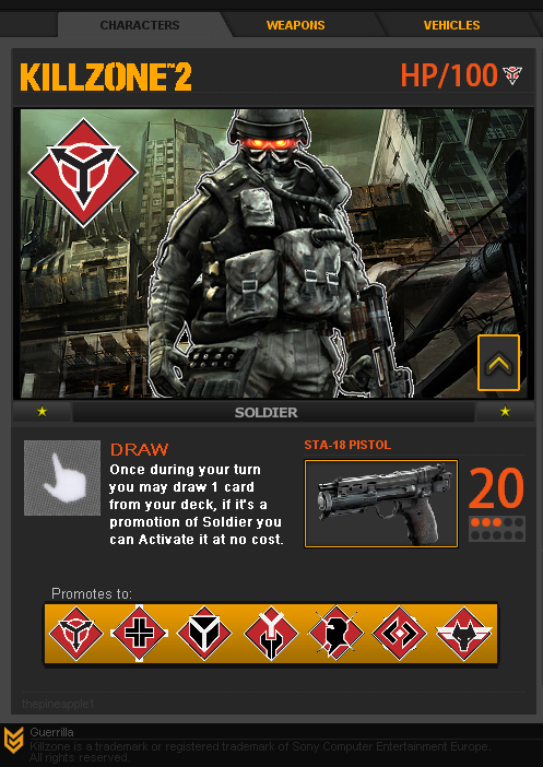 Killzone aficionado thepineapple1 released this very detailed card game in two packs, one each for the Helghast and ISA armies. Originally up on a page at the Killzone Wikia, there are some issues concerning whether or not the page will be allowed on the site since it is a fan-crafted project and not an official creation. Politics aside, however, you can download the two packs, complete with game rules and damage counters, at the links below. Which card is your favorite?