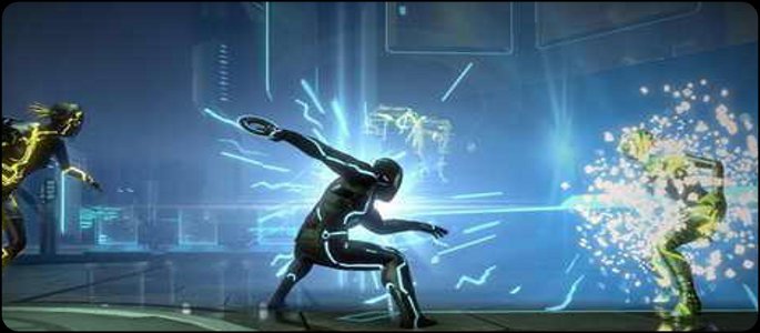 What little story there is told through an awkward, find-the-yellow-key intro which puts you briefly into the shoes of Tron (Bruce Boxleitner, reprising his role from the films). It’s 1989–according to the game’s promotional materials, not that it matters–and Kevin Flynn (a still photo of Jeff Bridges and a voice-over that doesn’t quite get it right) wants to throw a tournament of the Games–and for Tron to put a new program, Beta, into the system. There. Boom. Done. From there, all you do is select the games, battle other computers, and periodically face off with Tron and CLU for special unlockables, and eventually, playable versions of the film’s stars–minus, of course, Flynn… you know, the star of the film.
