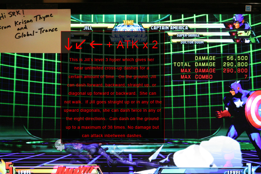 Furthermore her assists are suspiciously quiet.. there’s no ending taunt to them at all, barely even an audible grunt to them actually. In fact, a lot of her voice work is notably low-volume.. Her winning battle taunt is almost indecipherable, she mutters it so softly. Jill also appears to be missing any form of victory blurb at the end of battle.. Likewise, although her moveset is complete (as mentioned above) there do appear to be what I’d call balancing issues.. Her Machine Gun Hyper is a good example.. It’s honestly just so horrifically terrible, that I have a hard time believing it’s finished. If it’s honestly done the way it is, then she’ll probably have one of the worst hypers in the game in her arsenal. (Which isn’t too flattering to say for a DLC character, is it?)