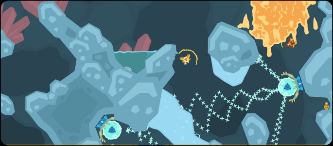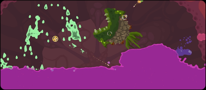 At first, it would seem that the strategy here is still simple, but more is brought to the table than a simple chase and firing rockets at each other. Twenty new weapons and abilities have been included that aren’t seen in the single player. Examples include the power to temporarily invert your opponent’s controls, fire homing rockets, shoot triple rockets, or even launch a devastating lava ball. Other abilities let you invert gravity, the fluid inverter turns lava into water and vice versa, and yet another sends a tsunami of water through the level, sweeping all the survivors off screen. Tricky powers are here too, letting you instantly switch places with your enemy, reverse time by a few seconds for both players, and lay explosive mines in strategic locations. Three abilities can be chosen for use in each battle, and each has limited uses per match, so careful selection creates a layer of depth that will keep you coming back for more, as each new weapon can completely change your strategy.