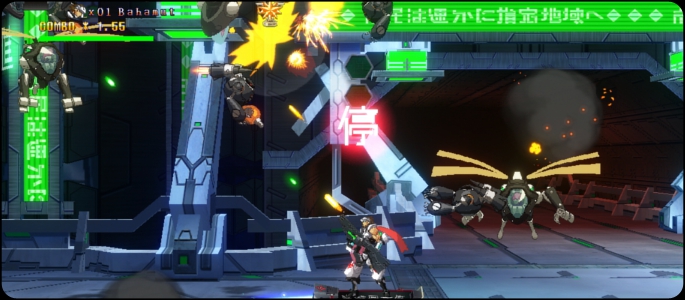 Hard Corps: Uprising puts players in control of the soldier known as Bahamut as he shoots his way through scores of foes. Allies are welcome to join the fray, with online and offline cooperative play available throughout the game. Gameplay is based on the retro feel of Contra, but with a fresh new look, and a new mode. The Rising mode featured in the game allows players to earn various upgrades for their characters, which grants a sense of progression beyond just finishing the current level.