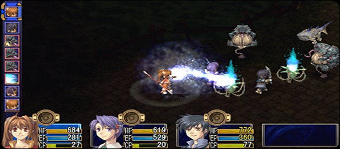 Rather than have save points scattered throughout the game, Trails in the Sky allows users to save at any point in time simply by visiting the menu. There are recovery points located throughout the game though, these allow for you to heal all of your characters by simply visiting it. They are typically located in dangerous areas/dungeon areas. Also using the supplied Recipe Book that you are given at the beginning of the game. By simply eating various things throughout the game your recipe book will gain an entry in it regarding what is needed to make it, as well as the effect it will have on your characters. This is a much cheaper way to heal your party than to go to the vendors and purchase various healing “potions”. There are two different kinds of meals, to-go meals and sit-down meals. The to-go meals may be eaten at any point in time by your characters, but sit-down meals must be eaten at that very moment upon receiving it, so they cannot be carried. The ingredients required to make things are bought at various stores, or received from monsters/enemies that you have defeated in battle.