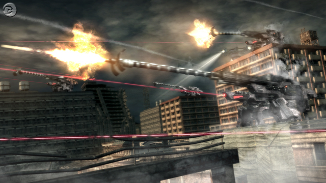 The newest screenshots of FromSoftware’s Armored Core V show bits of story missions as well as the online “team play.” Below, we see the first shots giving the player some mission objectives. A lot of these missions take place in very urban environments and, according to the developers, using the surroundings to one’s advantage will often be key. These cityscapes are said to be huge, but their exact size is not yet specified. Presumably, they will vary from mission to mission, though that’s not confirmed. In the seventh screen below, they say the player is using his laser-guided “sniper canon” not just to take aim at enemies, but to shoot down buildings and obstruct the opposition that way.