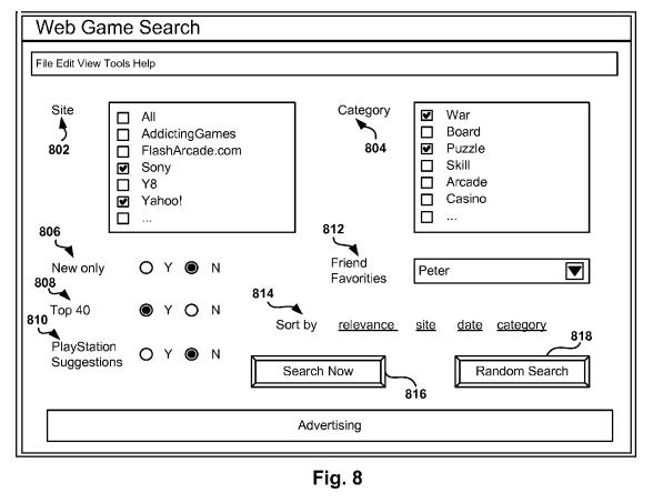 Interestingly, another part of the patent offers an example of how these specially made browser based games would be found through the PS3 (or even PSP): A store or search function that would include games from Sony: