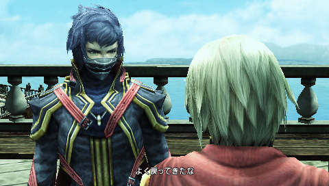 The characters shown are the three main characters, all members of the Suzaku, which is a magic academy. They’re in class Zero, from which the game surely draws its name. The man with the mask is their teacher, Kurasame. Also note the newly confirmed (but of course expected) presence of the Final Fantasy series staple and perhaps unofficial mascot, the chocobo.