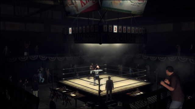 A fourth group of sceenshots have been released under the guise of the L.A. Noire Crime Desk on Rockstar’s official site. This time around, we get a look at an investigation involving a missing boxer, and another at a Jazz club where a shooting took place. Each occurred in the realistically reconstructed 1947 version of Los Angeles, where crime and gambling was prevalent, and where L.A. Noire takes place.