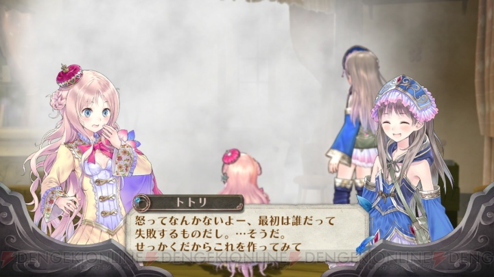 It’s also been explained why the heck Rorona, though older than both Totori and Meruru, is younger than her successors in this game. As hypothesized after seeing the first images, it was indeed an alchemy mix gone wrong. Meruru supposedly tries out a random alchemy combination she found laying around, and the result turns Rorona into a teenager. Whoops.