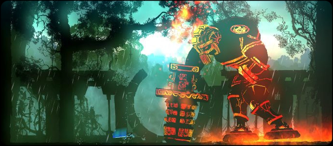 Outland plays like a Castlevania style 2D platformer; the levels are non-linear, you can go anywhere you want, except for areas that require a special ability to access. The abilities you get by continuing the main storyline range from launch abilities, to floor stomps, to powerful punches capable of breaking walls. These areas are all throughout the game. In fact, when you first start the game, you will come across a launch pad which you can’t activate until several hours into the game. Backtracking to previous areas is made easier by the various teleportation stations that are located around the levels. Of course, teleportation needs to be unlocked like the rest of the abilities, but it is a huge timesaver for exploring. Usually, these secret areas contain pots with gold that could be used to upgrade your character, but sometimes there will be a secret skull. These skulls are scattered all throughout the game and can be collected to unlock concept art and other features. To let you know the right direction to go, there is a cloud of golden leaves that lets you know where you should be heading. It does a great job of keeping you on track, so you can quickly get through a level if you don’t want to look for secrets. Checkpoints are scattered throughout the game to save your progress. Your progress is saved only at these spots, so if you collect a secret item and die before you reach a checkpoint, you will have to collect that item again. Luckily, the checkpoints are close enough so that isn’t much of a problem.