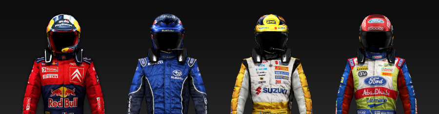 - Includes suits and helmets of 8 famous WRC and NASCAR drivers and 12 new helmets.