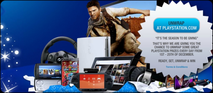 The giveaway is available to gamers in Europe (except Luxembourg, Portugal and Italy) who are 18+. Each day up till Christmas, simply visit http://www.youtube.com/sonyplaystation, hit the unwrap button and spin the box to see if you’ve won.