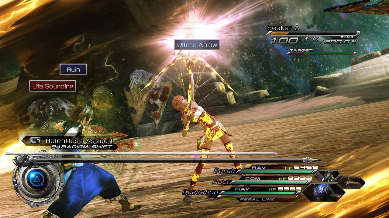 The screenshots below show Oerba, The Vile Peaks, Serah’s Ultima Arrow, and the Archytte Steppe Statues:
