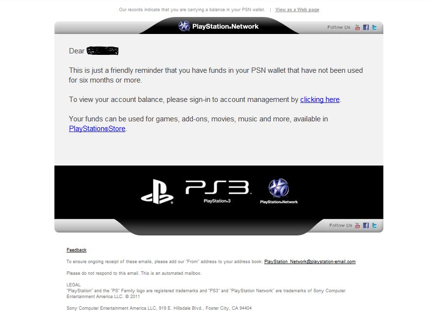 [UPDATE: Not Phishing] Beware of PSN Wallet Phishing Emails