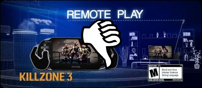 [Update] We picked up a brand new copy of Killzone 3 to test out Remote Play using the PlayStation Vita, and… it doesn’t work. “This content cannot be used during remote play”.