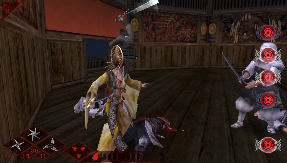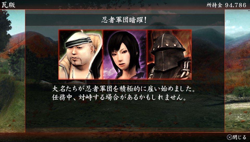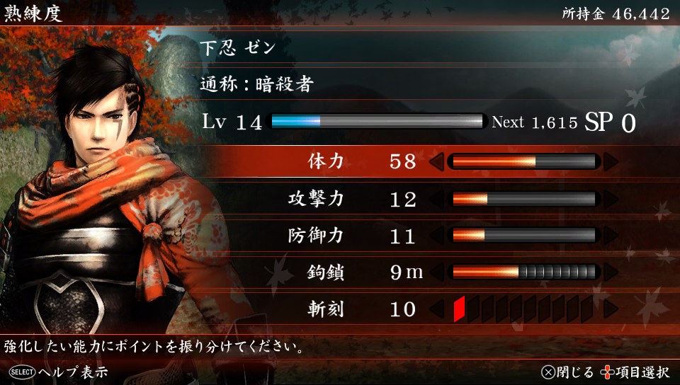 North America never got any of the PS2 or PSP Shinobido games, but thankfully, the story of this sequel can be understood without experience in those games. Don’t hesitate to jump in as a newbie just because of the “2” in the title. Below, I’m taking Zen around on the various missions that make up the game. After successfully completing the given objective — which could be assassination, hijacking of a goods caravan, protection of a VIP, or any number of ninja-type jobs — Zen gets experience points and eventually, the player can choose which of his stats to improve. I’ll shut up and let the screens do the talking: