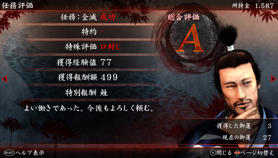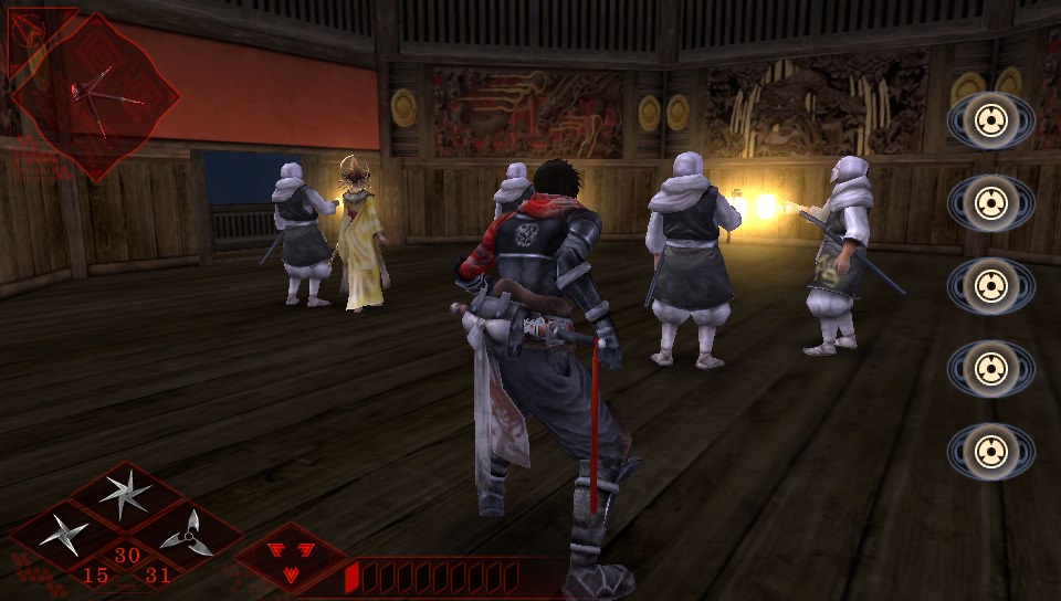 North America never got any of the PS2 or PSP Shinobido games, but thankfully, the story of this sequel can be understood without experience in those games. Don’t hesitate to jump in as a newbie just because of the “2” in the title. Below, I’m taking Zen around on the various missions that make up the game. After successfully completing the given objective — which could be assassination, hijacking of a goods caravan, protection of a VIP, or any number of ninja-type jobs — Zen gets experience points and eventually, the player can choose which of his stats to improve. I’ll shut up and let the screens do the talking: