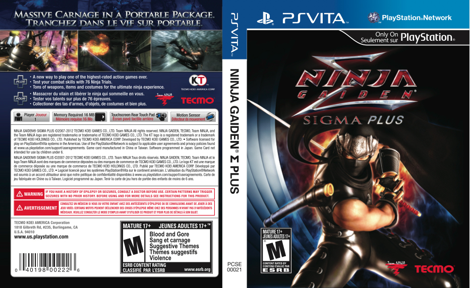 Tecmo Koei’s Ninja Gaiden Sigma Plus is coming to the PlayStation Vita on the handheld’s launch day, February 22nd. Today, Tecmo Koei released not only new screenshots for the game, but the game’s box art as well, which reveals how much Memory Card space is required for the title.