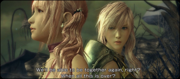 Instead of feeling like its own game, Final Fantasy XIII-2 feels like Motomu Toriyama trying to show off to Tetsuya Nomura, as if to prove hey, “I can make a crazy game with no gravity and stuff, too!” We got used to the no-gravity thing in Advent Children, and you have to make allowances for video games — even more for ones that include time travel — but some scenes in FFXIII-2 are off-the-wall ridiculous. There’s so much going on, to the point all these extra backflips and flying and swooping aren’t badass anymore, they feel forced and lame. Just because it’s possible to make a big flashy scene doesn’t mean it makes the game better. Tone it down a notch.
