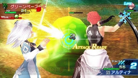 Sega also described the girl in the green and white outfit, whose name is Elumina. Her combat specialty is comparable to that of bards and support characters from other RPGs, as she sings “Force Songs” that affect all allies.