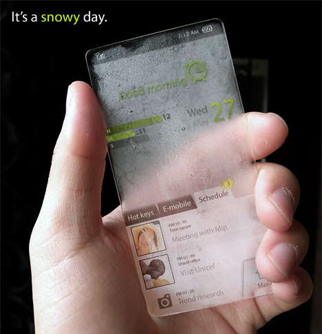 See-through screens and hardware would make augmented games far better and more ‘augmented’, it’d even make weather apps look cooler, as this mockup by Seunghan Song shows.