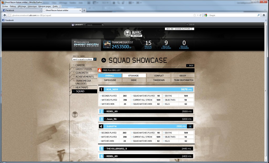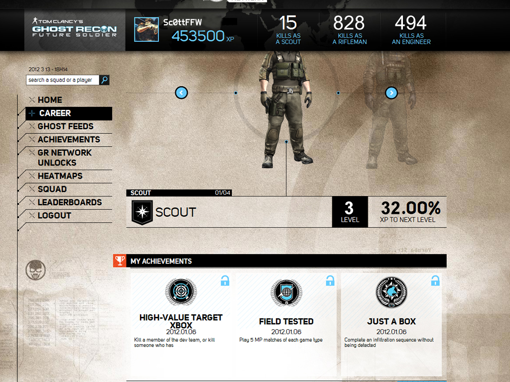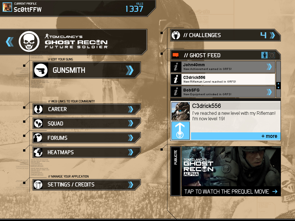 • Access personal player performance on Ghost Recon: Future Soldier & upcoming Ghost Recon games and compare stats on leaderboards