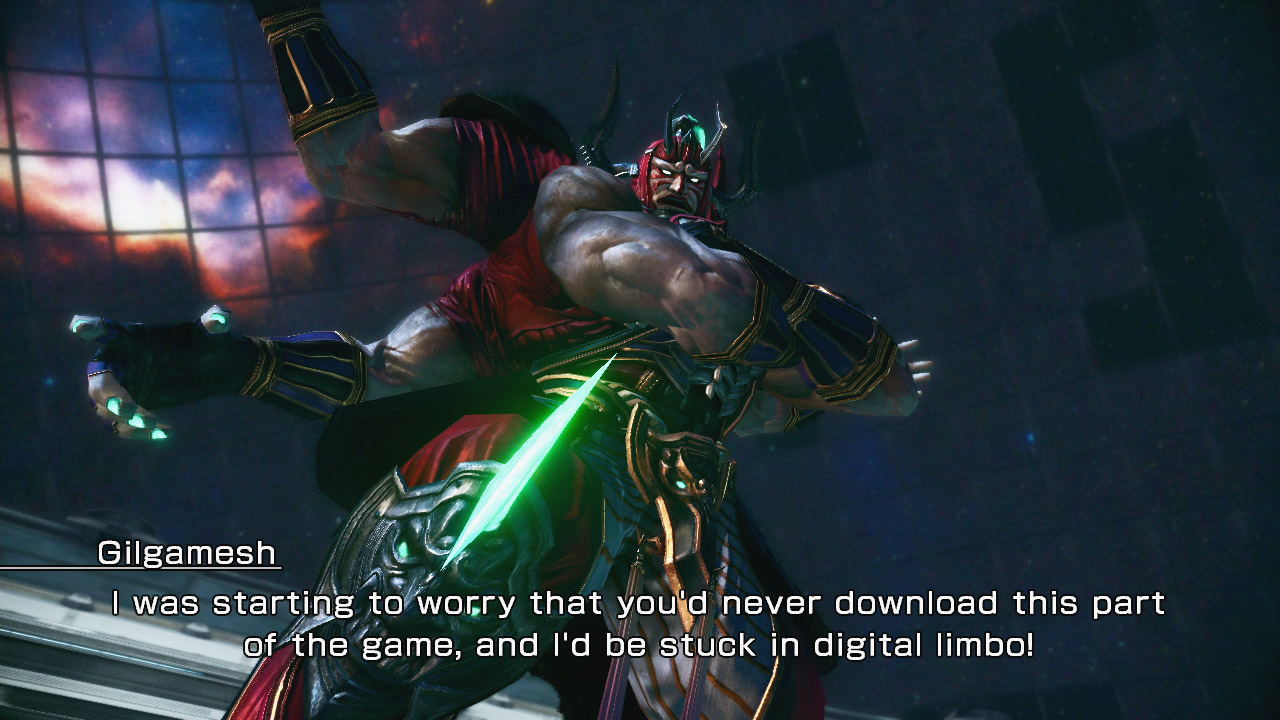 The first DLC comes in the form of new coliseum opponents, Gilgamesh (Final Fantasy V version) and PuPu (an alien from Final Fantasy VIII). Gilgamesh has been described as an opponent who should pose a more difficult challenge to players when compared to previously released opponents. Gilgamesh will cost $3.99 or 320 Microsoft Points, whereas PuPu will cost $1.99 or 160 Microsoft Points.