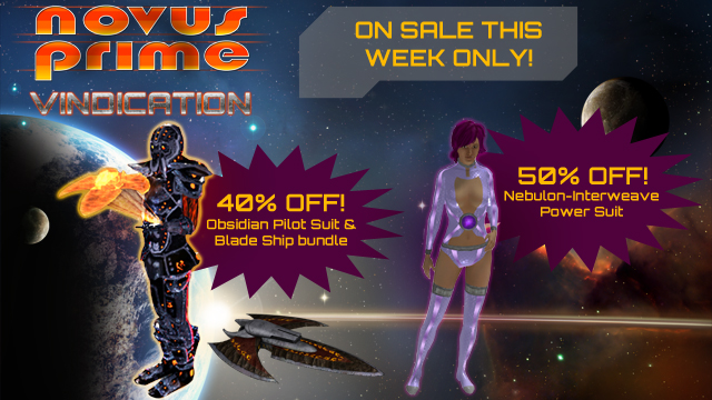 The PS Home update for this week also contains some outfits. HellFire Games is discounting some Novus Prime: Vindication outfits, including the Obsidian Pilot Suit & Blade Ship bundle (40% off) and Nebulon-Interweave Power Suit (50% off). The sale begins today and lasts until the end of the week.