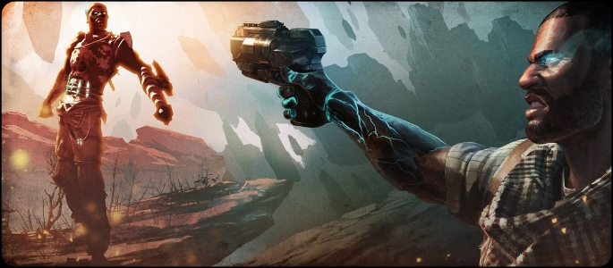 The single-player story is told through the narration and actions of Emmett Graves, a contract Rifter who has been infected by Rift energy. His world’s economy revolves around the mining of this dangerous resource, and such, different factions fight to claim it for their own. It’s like the Gold Rush in early American ‘Wild West’, and the music and desert-like settings help to make for a Space Cowboy-type theme.