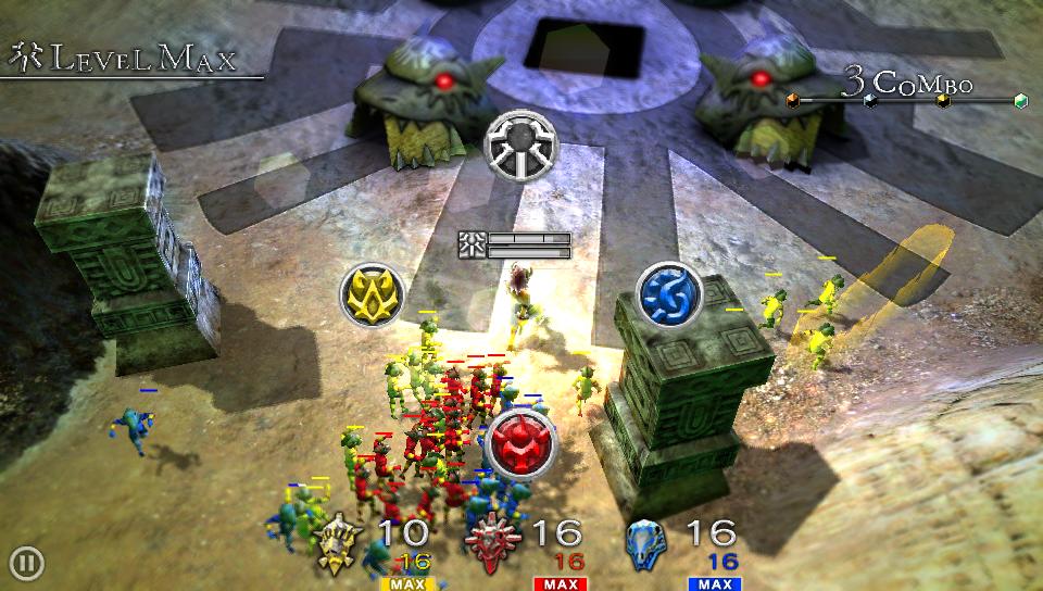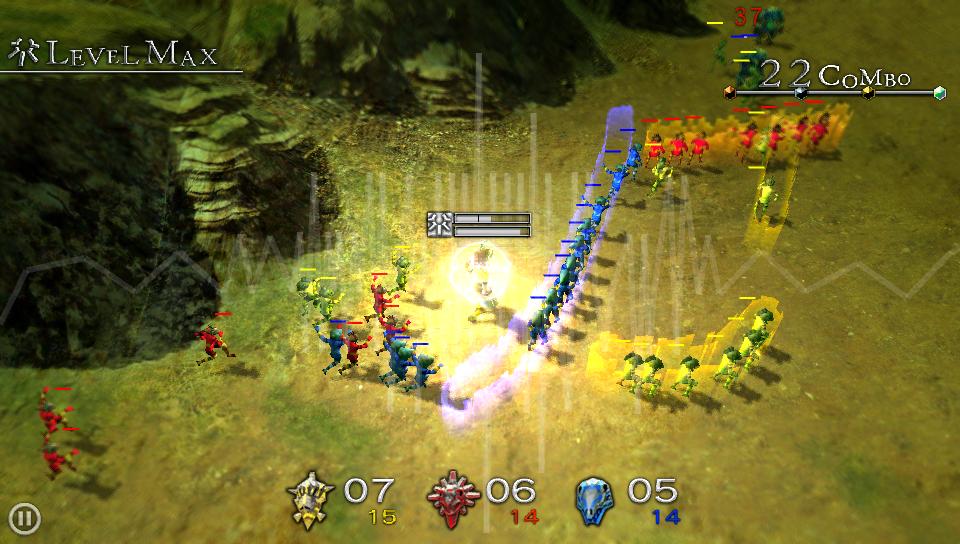 With an almost top-down view, you can command your guys based on their abilities. Each of the three groups of your soldiers are color coded, so knowing what the color means, will aid you in your strategies. The colors gave the game a rock-paper-scissors feel to it. You’ll have to learn to master water, sharp/blunt objects and fire. Having a group of your guys dropping boulders onto the heads of opposing forces can go a long way to winning your battles.