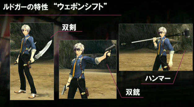 The battle system will have that touch of action that Tales has been known for over the years, more specifically being built upon the foundation of, naturally, Tales of Xillia. Players will now have the ability to switch weapons in mid combat. For example, the character Ludger was shown on the video switching back and forth between a pair of swords and a pair of handguns. According to a screen shown later, he can also apparently wield a hammer.