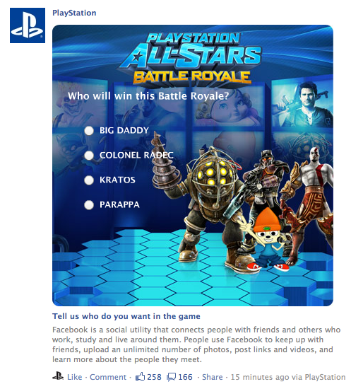 Ahead of the E3 showing of PSASBR, the Facebook page briefly put up two polls that confirmed the obvious inclusion of Nathan Drake and the more surprising inclusion of BioShock‘s Big Daddy. The poll was seen by numerous people before being taken down, and was also captured by NeoGAF: