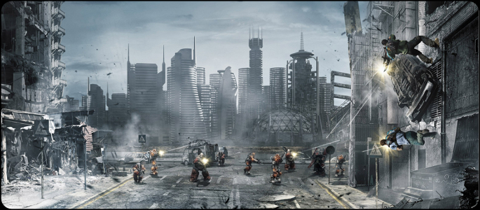The game’s story is that of Davis Russell and Leo Delgado, two policemen in Vanguard City who are on their way to Russell’s home to visit his family when the city suddenly comes under attack. The city is under attack from a group of human-like alien savages called “Lutadores,” who speak remote bits of English and seem obsessed with digging and construction — even to the extent of enslaving the people of Vanguard City and forcing them to do work for them under the threat of death. Russell and Delgado become enslaved, but escape, embarking on a quest to find Russell’s daughter after they visit his place and discover that she’s missing. Along the way, they discover the Lutadores’ Gravlink technology, which allows them to manipulate gravity and use it against their enemies in the same way that some of the Lutadores do.