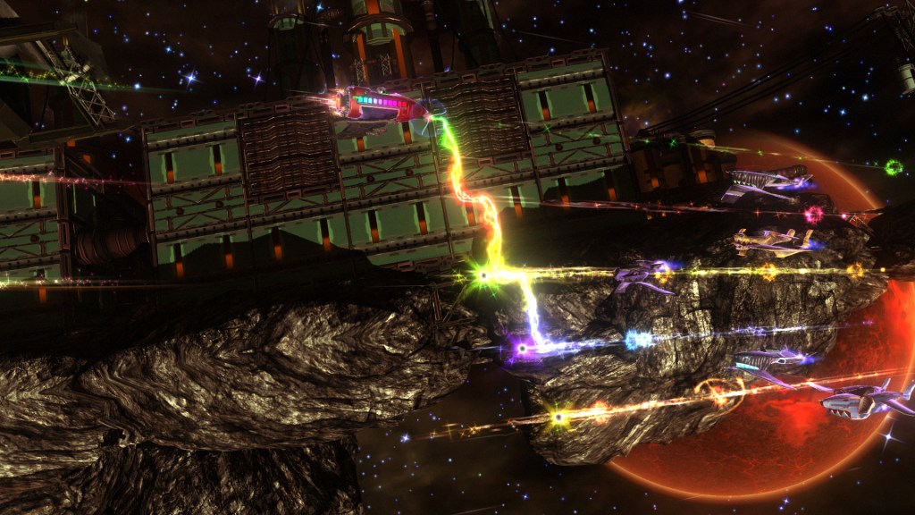 To play, gamers can use a DualShock 3 or a PS3 guitar controller (details on guitar support will be announced later). On a DualShock 3, gamers will use the directional pad to move up and down and use X to “un-fire,” whereas on a guitar, fret buttons move the ship and strumming “un-fires.”