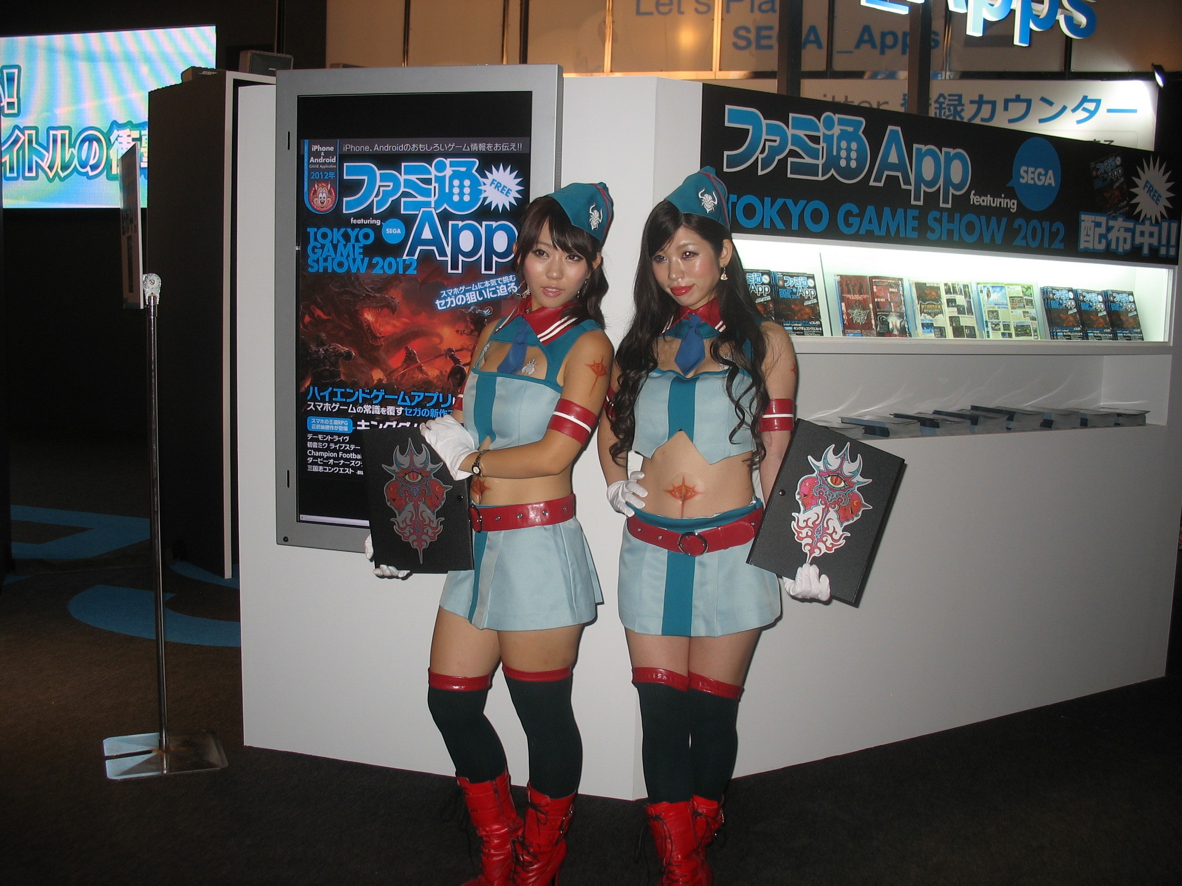 Alright. People always ask for booth babe pictures from these trade shows, so, here you go. These are some of the dressed up booth workers from the Tokyo Game Show, 2012. A full, actual, picture gallery will follow soon.