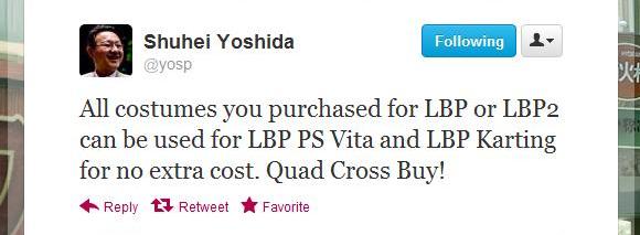 Then, come November, all of your spiffy downloaded costumes will be making their way to United Front Games’ promising LittleBigPlanet Karting and, fortunately for us, Shuhei Yoshida has already established an awkward term for this innovative pro-consumer triumph: