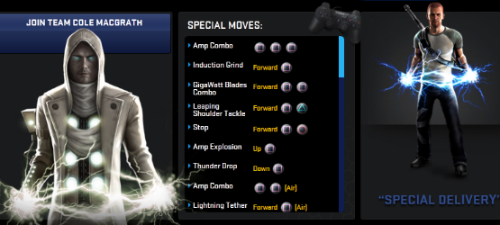 The arguably most striking addition to the site is the addition of high quality half-renders (as seen above) for all the pre-order costumes. Cole McGrath’s….let’s call him ‘friend’ Kessler is looking pretty spiffy in the Cole alternate costume showcased above.