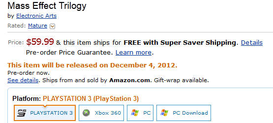 Now, Amazon.com (who is rarely wrong) has posted a new release date of Tuesday, December 4th for the Mass Effect Trilogy. This date definitely sounds a lot better and if true, also means that Mass Effect 1 would be coming to the PlayStation Network on the exact same day.
