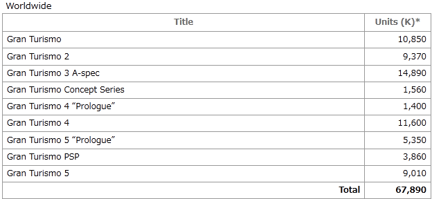 Looking at every single Gran Turismo, they have combined to reach 67.89 million sold. The highest selling one to date is Gran Turismo 3: A-Spec on the PlayStation 2 at 14.89 million, with Gran Turismo 4 way behind at 11.6 million.
