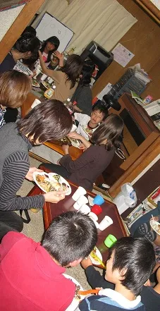 At some point during the dinner, we take a pause, and each person talks briefly about something he/she is especially thankful for in that particular year. It’s heartwarming to hear what everyone says, and cute to see the little kids get all shy and say things like ともだち (friends) and 母さん (mom).