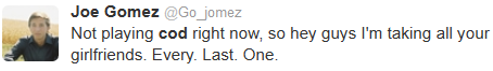 So, I’d like to share a couple of the more entertaining Call of Duty Tweets, and trends I’ve noticed.
