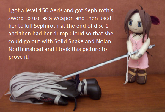 At this point you may be thinking “But wait Chandler, I play games like Final Fantasy VII, and Uncharted! I’ve escaped the ‘high-score’ mentality, right?”. Wrong. How often have you heard people talk about Final Fantasy (VII or otherwise) and somebody inevitably says “Oh yeah, I did absolutely 100% everything you could do in that game, and got the uber secret sword of ‘blah’, got to see character A totally get it on with character C in a secret scene, and got the super secret ending sequence where you actually play as the villain!”, which is, of course, all lies.
