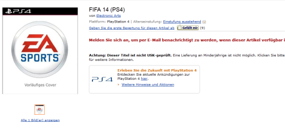 If a listing on Amazon.de is to be taken literally, it looks like this trend will be continuing as they have begun a listing for FIFA 14 on the PlayStation 4. Looking a little deeper, they also have separate listings for the PS3, Xbox 360, and PC versions of the annual sequel as well.