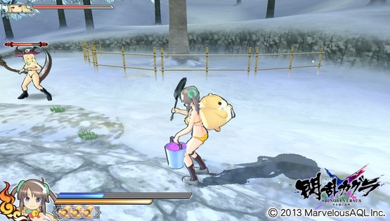 Senran Kagura: Shinovi Versus came out in Japan at the hind end of February and currently stands as one of the Vita’s best-selling pieces of software in its home country. I’ve now taken a ton of screenshots showing battle, menus, and most importantly, the T&A. I required no zooming for most of these, as the camera automatically cuts to an up-close show of the girls’ chests and butts when their clothes get torn off. Enjoy the screens!