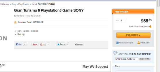 Priced at $59.99, they list Gran Turismo 6 for a Thursday, November 28th release date. Now, generally when it comes to games in North America, they come out on a Tuesday. The only possible reason to launch on that particular Thursday though is that it is the day before the immensely busy Black Friday.