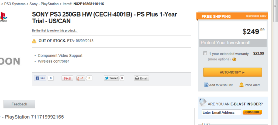 As for the second bundle, it has an ETA of Sunday, June 9th (the week of E3) and is called the “SONY PS3 250GB HW (CECH-4001B) – PS Plus 1-Year Trial – US/CAN.” This one costs $50 less at $249.99 and will most likely just include the PlayStation 3 with a 250GB hard drive and one year of PlayStation Plus.