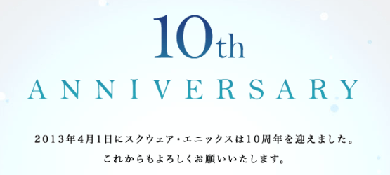 The last time Square Enix’s 10th Anniversary site opened, it let us know they’re “thinking of collaborations and a bunch of things that should make everyone a little bit happy.” Now that it has re-opened, we were given a clock stuck at 46:49, as well as a little bit more information, as translated by Gematsu: