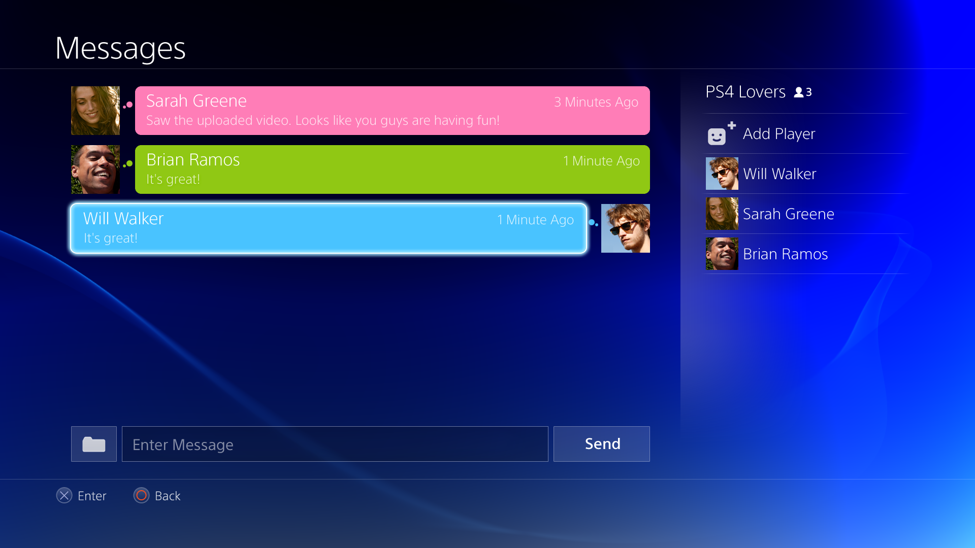 In these, you’ll see the UI for the console, smartphones, how the messaging systems looks, and some older shots of the PS4, DualShock 4, and PlayStation Camera: