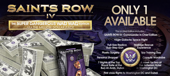 Not content with just having a Super Dangerous Wub Wub Edition, Deep Silver has partnered with GAME to offer a single Super Dangerous Wad Wad Edition (aka The Million Dollar Pack) for $1 million. If you’re actually interested in buying the Wad Wad Edition, send an email to [email protected].