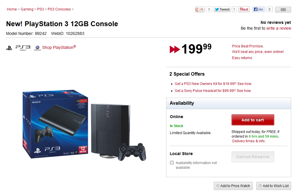 Original Story: Appearing just days after we exclusively let you know about the 12GB PS3 possibly coming to the United States and Canada August 18th for $199.99, Canadian retailer Future Shop has confirmed it with a listing on their website, though it probably won’t ship until August 18th: