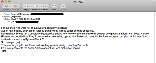And once the Prey 2 at Arkane news was leaked, he sent out another one: